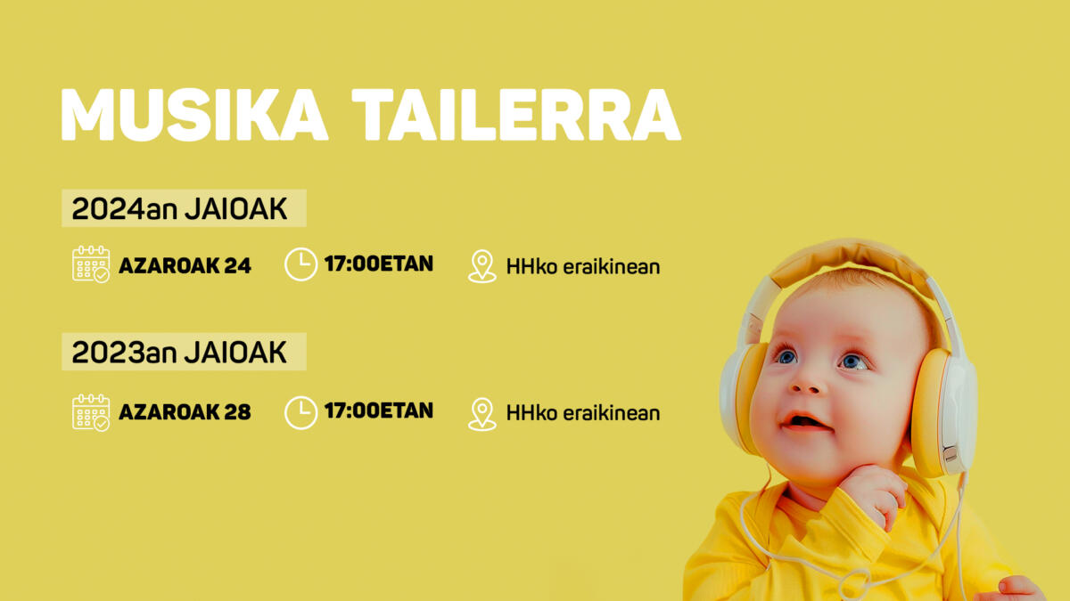 La Salle Berrozpe Ikastetxeak doako musika tailerra antolatzen du 2023 eta 2024an jaiotako haurren familientzat. Jolasa, erritmoa eta soinu-esperimentazioa oinarri, musikak psikomotrizitatea, komunikazioa eta adierazpen emozionala sustatzen ditu hasierako adinetan.